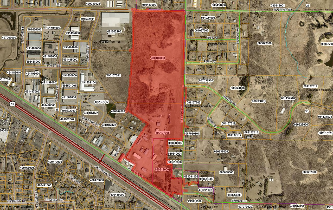 Seller may carry and is open to creative finance and terms. Here is your chance to own a PRIME piece of real estate just off Highway10 in Detroit Lakes! This listing is for 3 parcels totaling over 80 acres! This site offers excellent potential for commercial, multi-family, mixed-use or other development opportunities that support the continued growth of Detroit Lakes. The center parcel contains 10 buildings with a total of approx 47,000 sq ft of space. The northern parcel is approx 50 acres of development property within city limits. Located directly off of Randolph Rd and Highland Dr you will have amazing accessibility and visibility. City water, sewer, and natural gas are available on site. As you know, large, contiguous development opportunities like this are rarely available in Detroit Lakes. Do not wait on this one. Schedule your showing today!