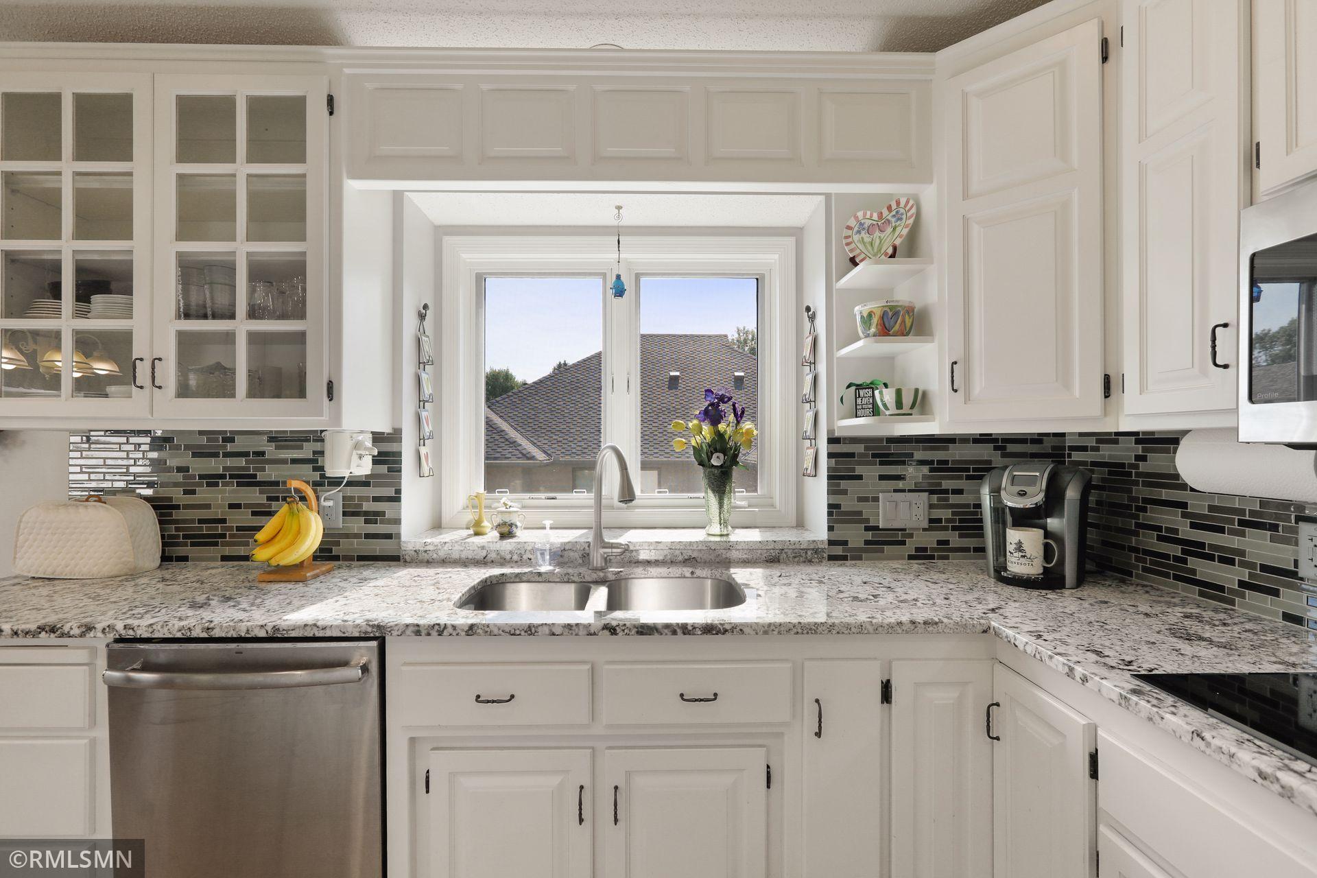 Gorgeous end unit town home with an open floor plan and lots of updates. Beautiful curb appeal, brick exterior, tasteful landscaping, and a spectacular 4-season porch. Updated gourmet kitchen with stainless appliances and loads of storage. All living facilities are on one level. Huge master suite with private bath and walk-in closet. Huge family room with a stunning wet bar, updated deck, and lots of room for entertaining. American Home Shield warranty included. Welcome Home!