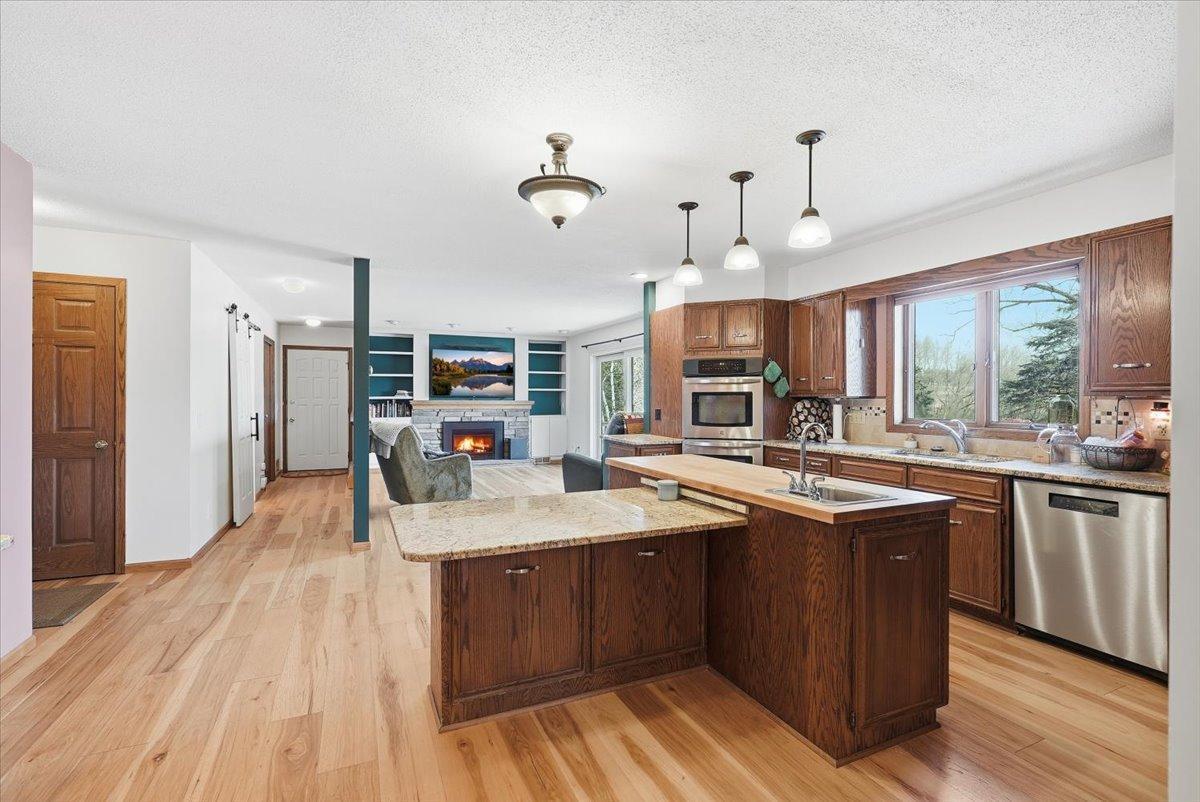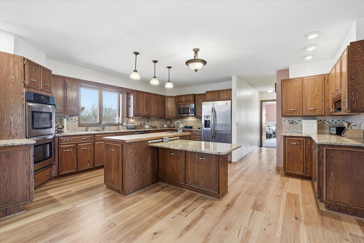 Welcome to this stunning two-story home in New Richmond, offering space, comfort, and beautiful views! Step inside to find a spacious main level featuring all new flooring throughout, along with a large office - perfect for working from home. The bright and inviting kitchen is equipped with stainless steel appliances, a double oven, abundant cupboard space, and a generous center island ideal for gathering and entertaining. The cozy living room boasts a gas-burning fireplace and picturesque views of the beautiful backyard. You’ll also find a formal dining room, convenient half bath, and a large primary bedroom with a private ensuite bathroom all on the main level. Upstairs, you’ll discover three additional bedrooms with some brand new carpet, a full bath, and storage space to meet your needs. The lower level is built for entertaining and everyday living, featuring a spacious family room, an impressive wet bar area, laundry room, another bathroom, and even more storage. Outside, enjoy the attached three-car garage and unwind on the large back deck overlooking the water - perfect for relaxing evenings or hosting guests. This home truly has it all!