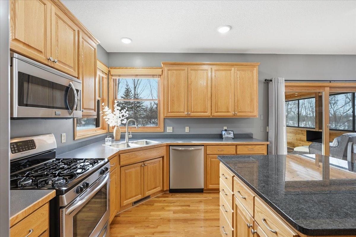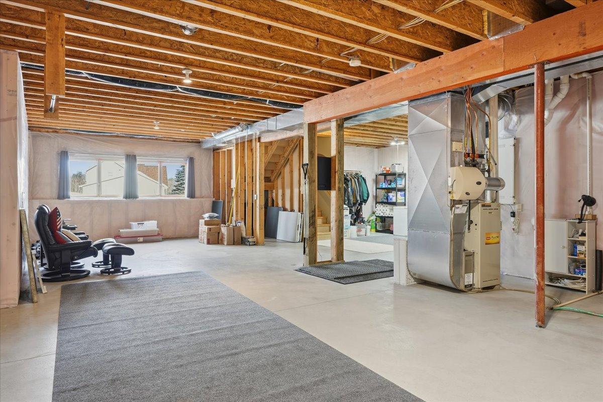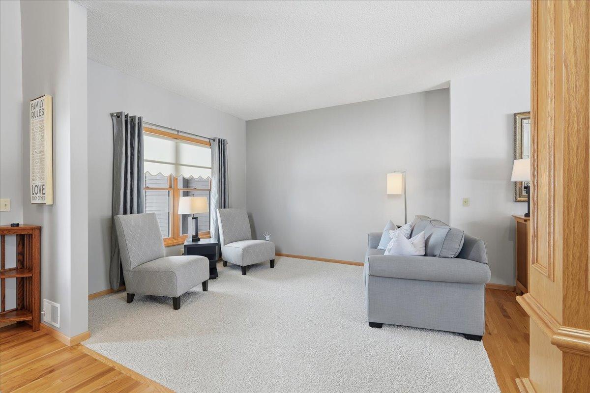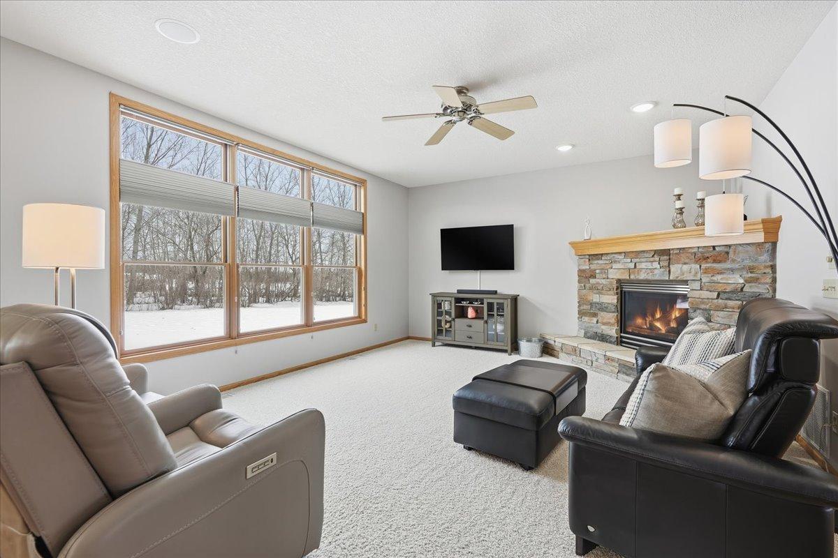 Located in the highly coveted Waters Edge neighborhood of New Richmond, this three-bedroom, three-bath, two-story home offers a perfect blend of comfort, space, and a peaceful country setting. Step inside to a welcoming foyer that opens to a sitting room and a cozy living room with a fireplace, creating an inviting atmosphere for everyday living and entertaining. The large kitchen features a center island and flows seamlessly into the dining area, while a beautiful sunroom provides additional living space with views of the stunning landscaping. A convenient half bath and a mudroom with laundry complete the main level. The upper level includes a full bath and three bedrooms, highlighted by a spacious primary suite with a private bathroom featuring a soaking tub and separate shower. The home also offers an impressive four-stall attached garage, with three stalls in the front and an additional stall in the rear—ideal for lawn equipment, toys, or extra storage. Set in a serene, country-like environment, this property is surrounded by beautiful landscaping and frequent wildlife, offering a peaceful retreat while still being close to town. This home is exceptionally clean, meticulously maintained, and truly gorgeous both inside and out—showcasing pride of ownership at every turn.