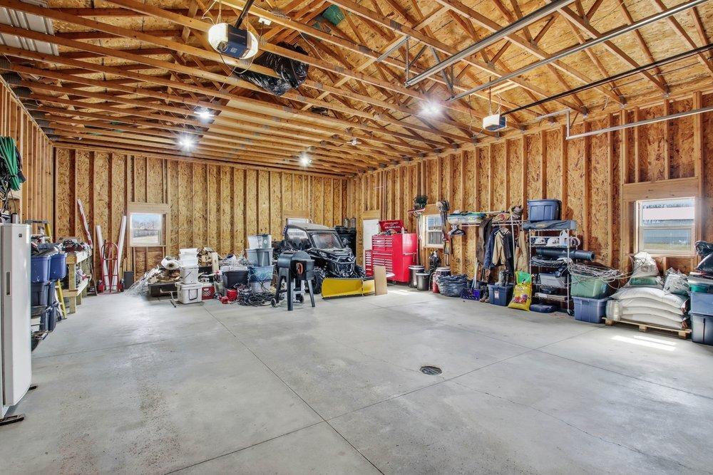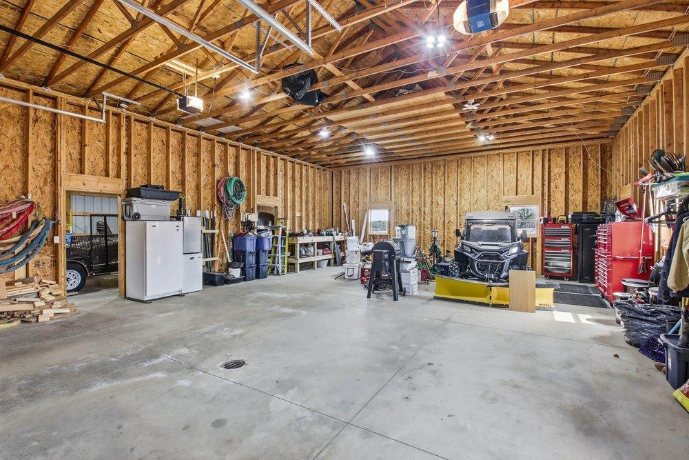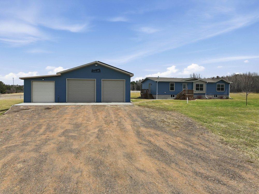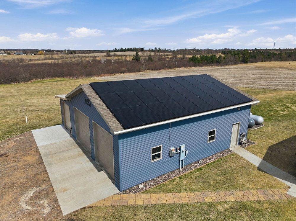 Discover the perfect balance of serenity and tranquility in this beautifully maintained 2018-built, 3-bedroom, 2-bathroom home. Situated on a lush 2-acre lot just outside the city of Turtle Lake, this property is a rare find for those seeking a modern lifestyle with minimal overhead. The standout feature is an elaborate, high-output solar system designed to provide total energy independence—say goodbye to monthly electric bills. Step inside to a bright, open-concept layout where vaulted ceilings and thoughtful window placement flood the home with natural light. The interior feels fresh and move-in ready, featuring new Shaw carpeting (installed 2024) in both the living room and the spacious primary suite. Whether you are hosting a dinner or enjoying a quiet evening, the seamless flow between the kitchen and living areas creates a welcoming atmosphere. For the hobbyist, mechanic, or small business owner, the outbuildings are second to none: Main Garage: 30' x 40' shop featuring impressive 14-foot sidewalls, perfect for lifts, large equipment, or boat storage. 15' x 40' lean-to addition provides covered space for trailers or firewood, complemented by an 8' x 18' garden shed for all your tools. The expansive backyard is anchored by a stunning paver block patio complete with a custom pergola and fire pit, creating an ideal setting for summer gatherings. The 2-acre grounds are beautifully accented with young, decorative maple and birch trees, offering a peaceful landscape that will only grow more beautiful with time.