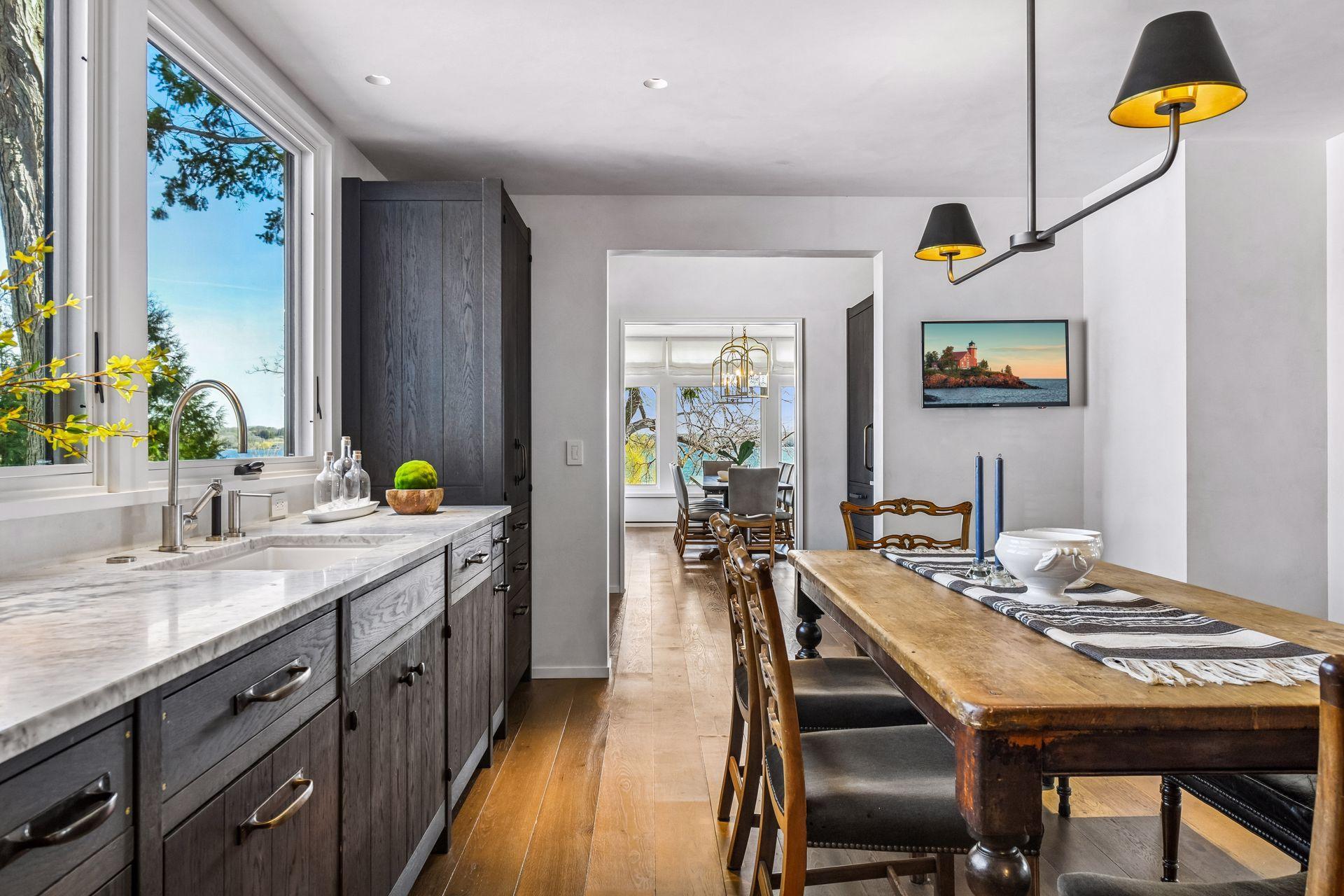 Landmark lakeshore estate on prime historic Bracketts Point Road. Astonishing once in a lifetime opportunity to own this totally remodeled home. Panoramic views of main lake - both East and West on this peninsula. Privacy, sweeping views of sail boat races, sunrises, sunsets and breezes galore. Measurements are approximate and not guaranteed. All buyers must be pre-qualified.